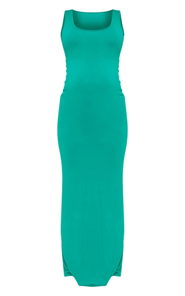 On shoppe illico cette robe de grossesse ! Avec sa couleur verte, sa coupe longue et son col rond, on ne peut que valider. Pour un look canon pendant les 9 prochains mois, il vous suffit de la porter avec une paire de mules à talons et quelques accessoires. Enceinte et en style !