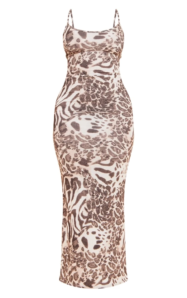 Shape Robe longue en jersey marron imprimé léopard à bretelles