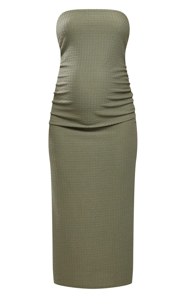 Maternité Robe de grossesse bustier longue texturée vert olive