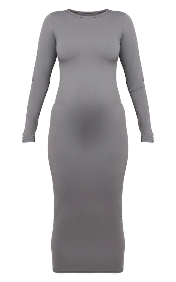 Maternité Robe de grossesse longue gris clair Sculpt Luxe à manches longues