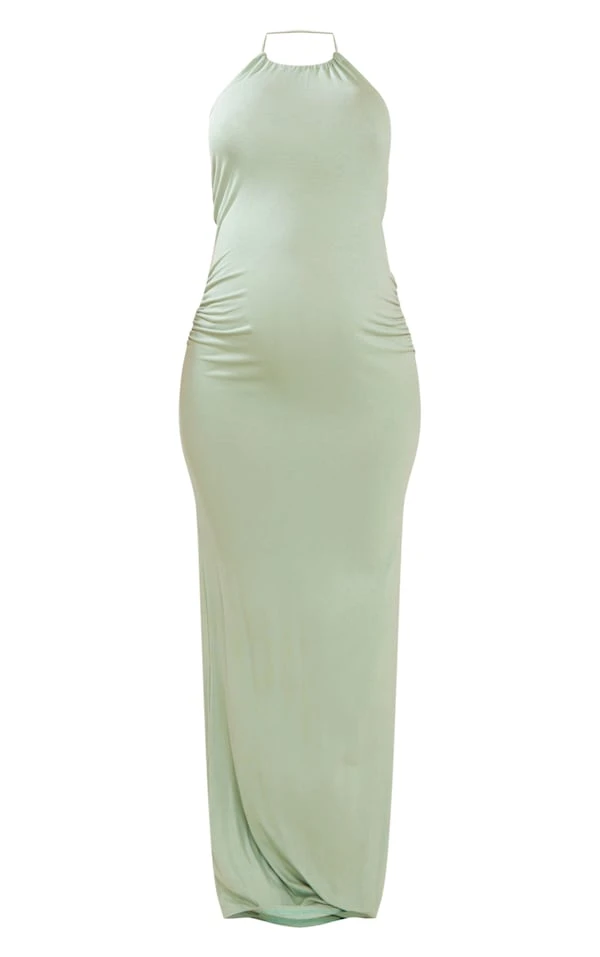 Maternité Robe de grossesse longue vert sauge à dos nu
