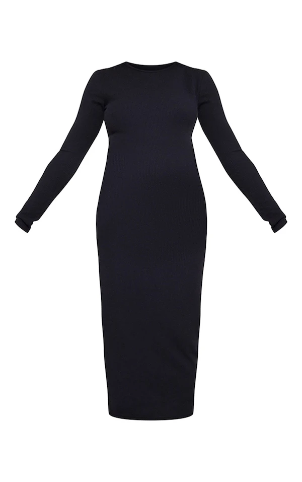 Maternité Robe de grossesse mi-longue côtelée noire à manches longues