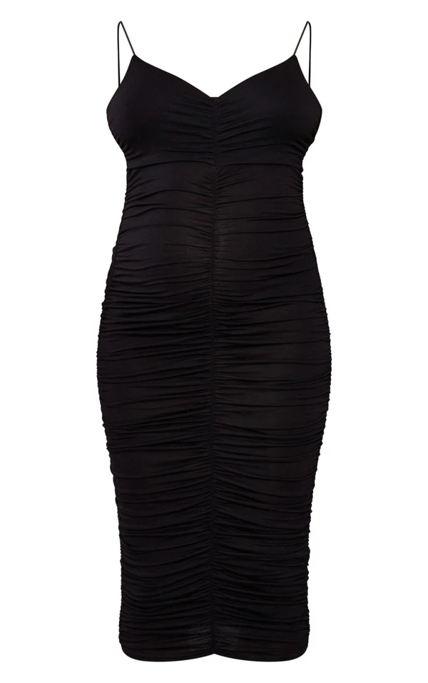 Maternité Robe de grossesse mi-longue en jersey noir à décolleté et fronces détail contours