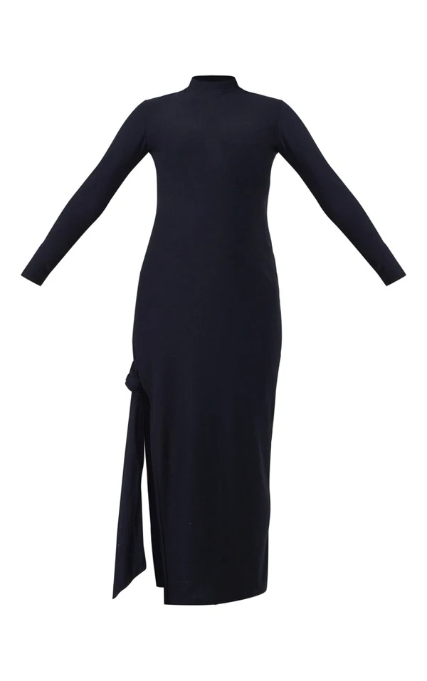 Maternité Robe de grossesse mi-longue noire douce fendue sur le côté