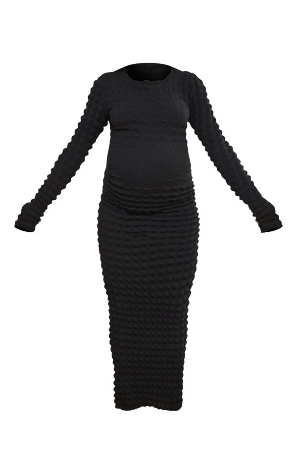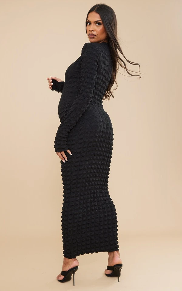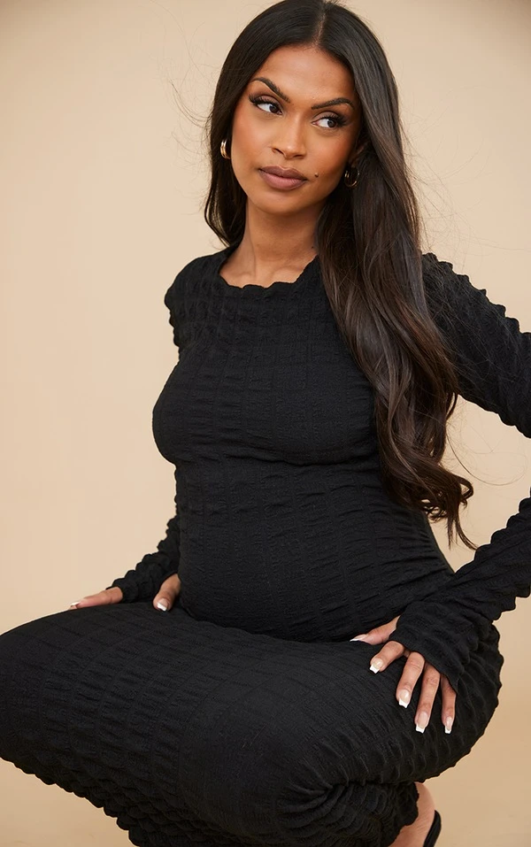 Maternité Robe de grossesse mi-longue noire texturée effet bulle