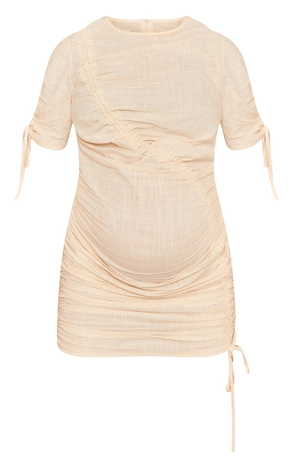 Maternité Robe de grossesse moulante en lin mélangé crème à fronces