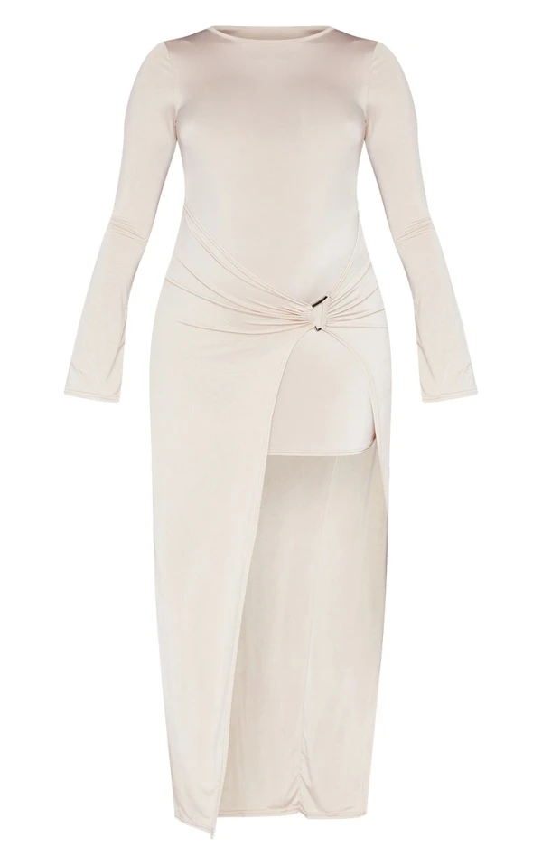 Maternité Robe de grossesse moulante longue beige à boucle