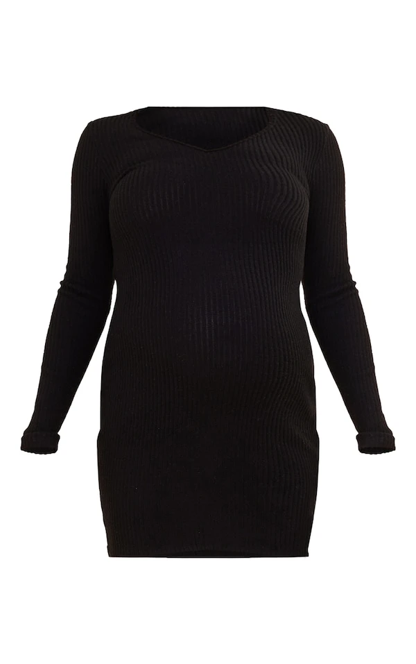 Maternité Robe de grossesse moulante noire en maille côtelée brossée à décolleté