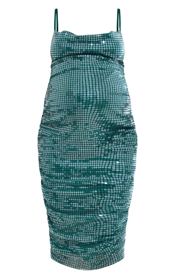 Maternité Robe de grossesse vert émeraude à sequins et col bénitier