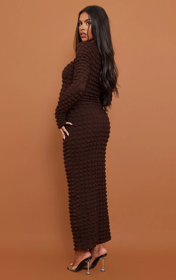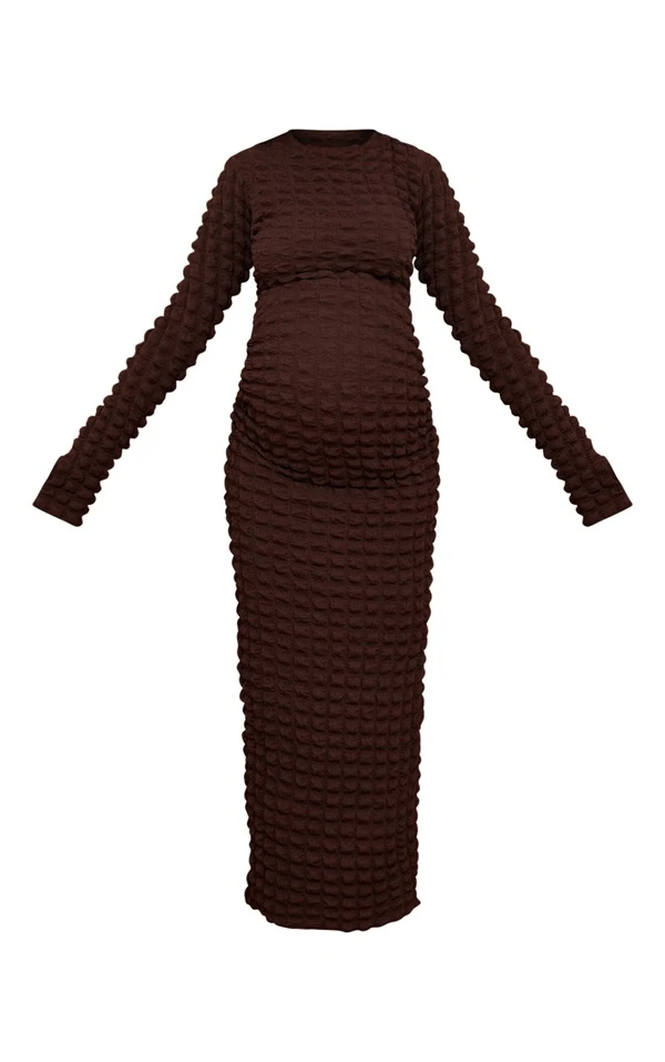 Maternité Robe longue de grossesse en maille bulle chocolat texturée