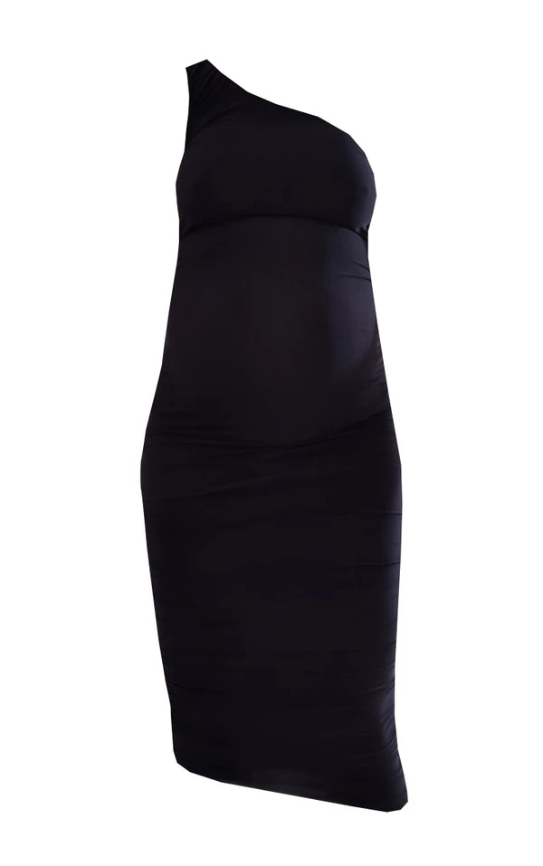 Maternité Robe mi-longue de grossesse moulante noire asymétrique