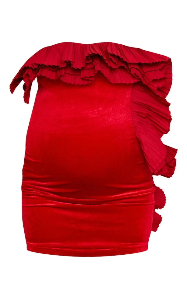 Maternité Robe moulante de grossesse rouge à bustier volanté