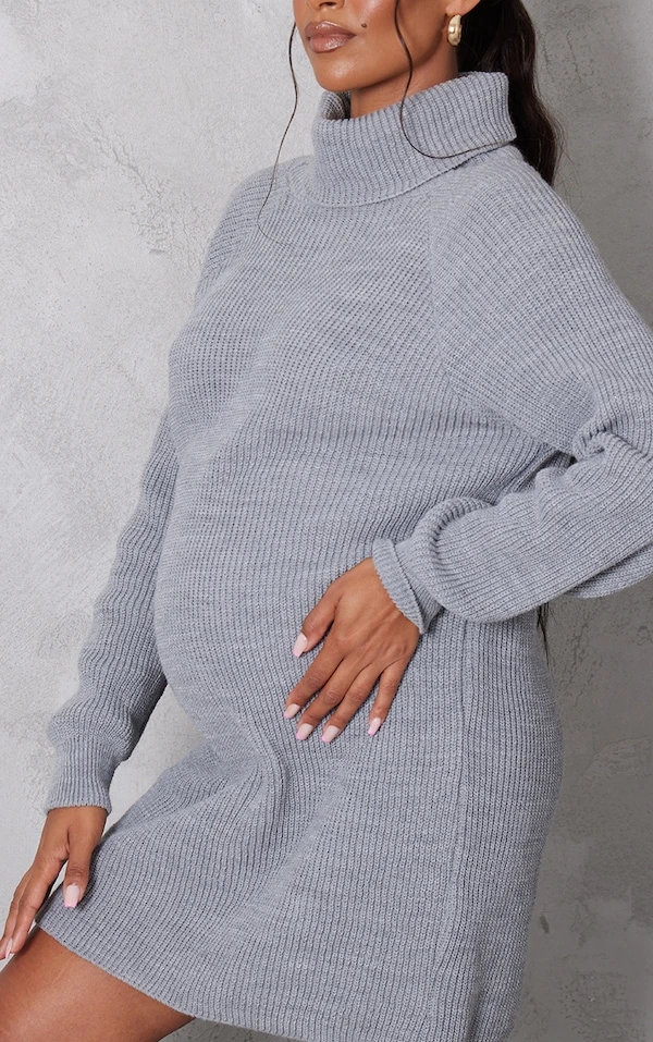 Maternité Robe pull de grossesse gris chiné oversize à col montant