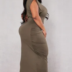 Maternité Robe De Grossesse Mi-longue Noire Côtelée à Col Ras-du-cou
