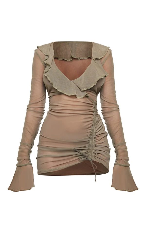 Petite Mini robe en mesh vert olive à manches longues