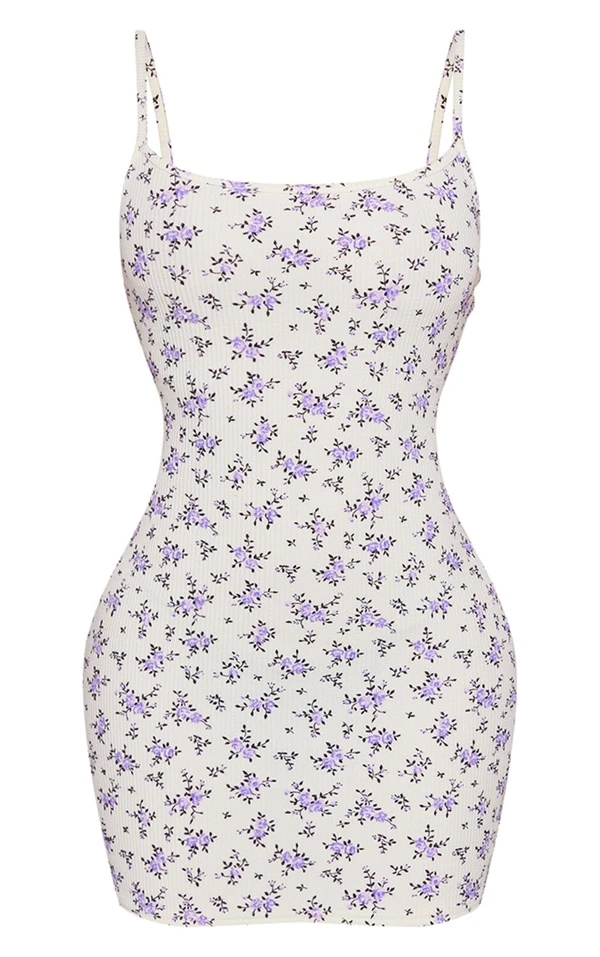 Petite Mini-robe fleurie crème froncée devant à bretelles