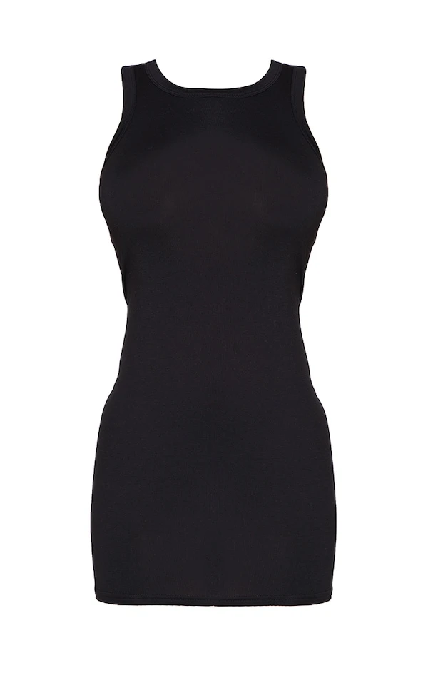 Trop flatteuse cette robe noire à dos nageur, les bombes. Elle est super facile à porter avec une paire de baskets, des boucles d’oreilles XXL et une veste oversize. Le look est bombesque.