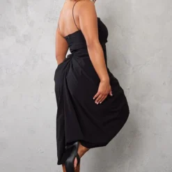 Crush sur la robe satinée! On adore son imprimé asiatique si délicat et le détail fendu très sensuel. Il ne reste plus qu’à ajouter les talons et quelques bijoux pour finaliser le tout. Quelle beauté!