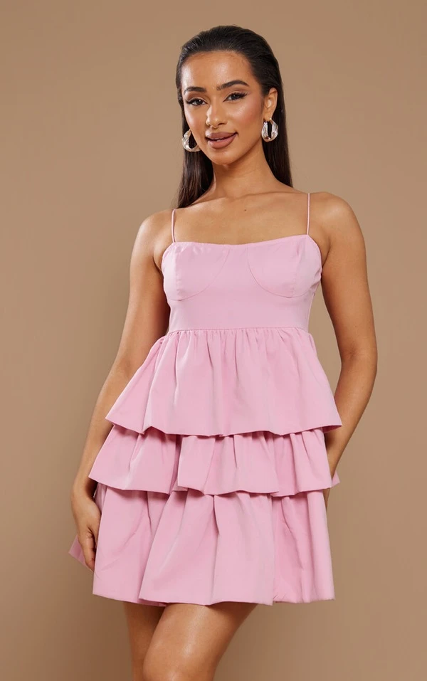 Petite Mini robe volantée rose bonbon à parties superposées