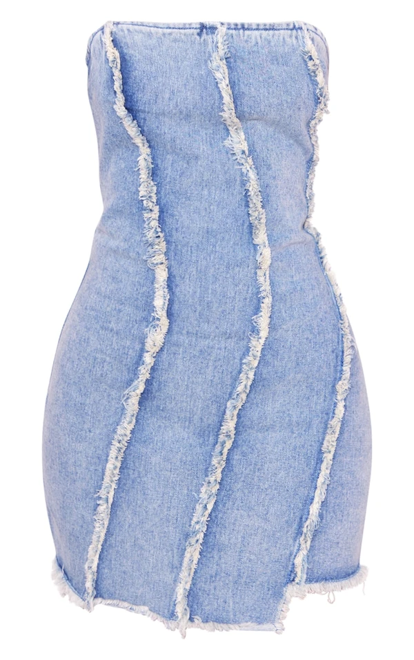 Petite Robe bustier en jean bleu clair délavé vintage