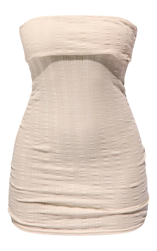 Petite Robe-bustier moulante texturée crème à bordure repliée