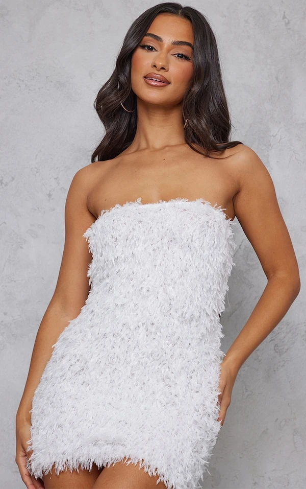 Vision angélique dans cette robe bustier ! On adore sa maille fluffy de couleur blanche, sa coupe toute courte et son mood parfait pour une soirée. Plus qu’à enfiler des talons hauts et quelques accessoires argentés. Trop belle !