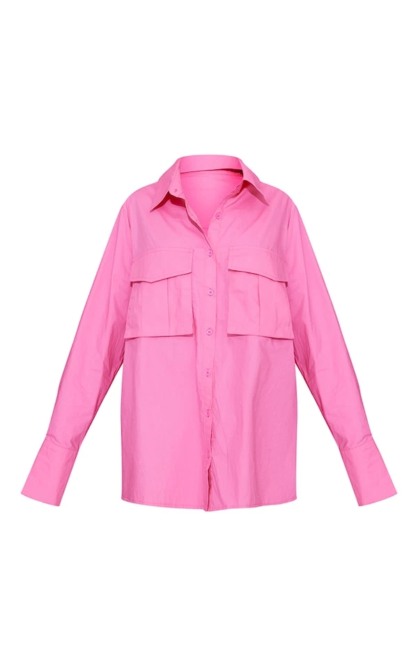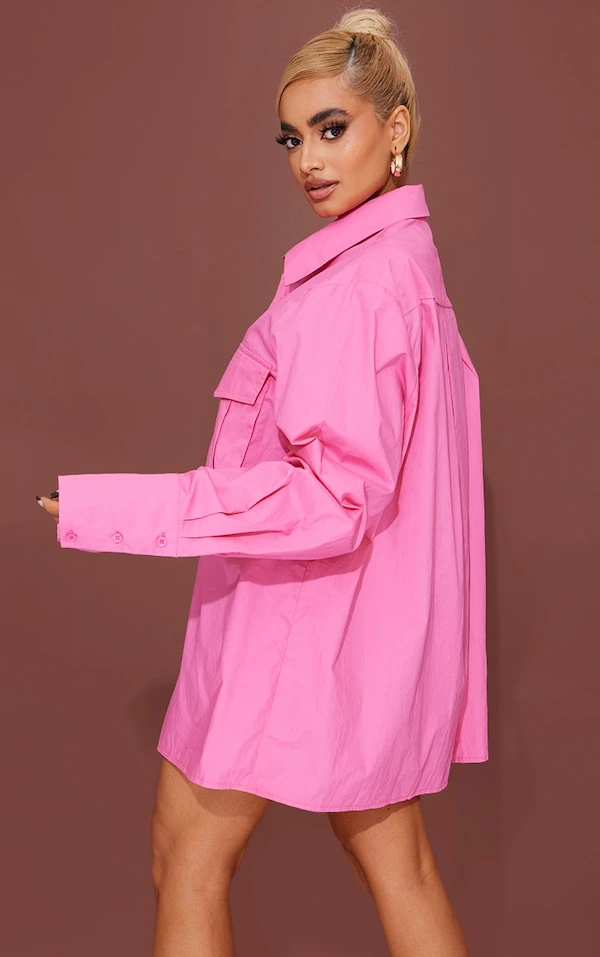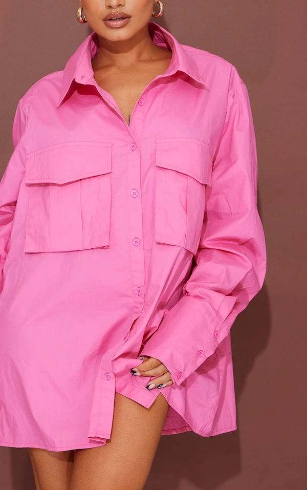 Petite Robe chemise style cargo rose vif oversize