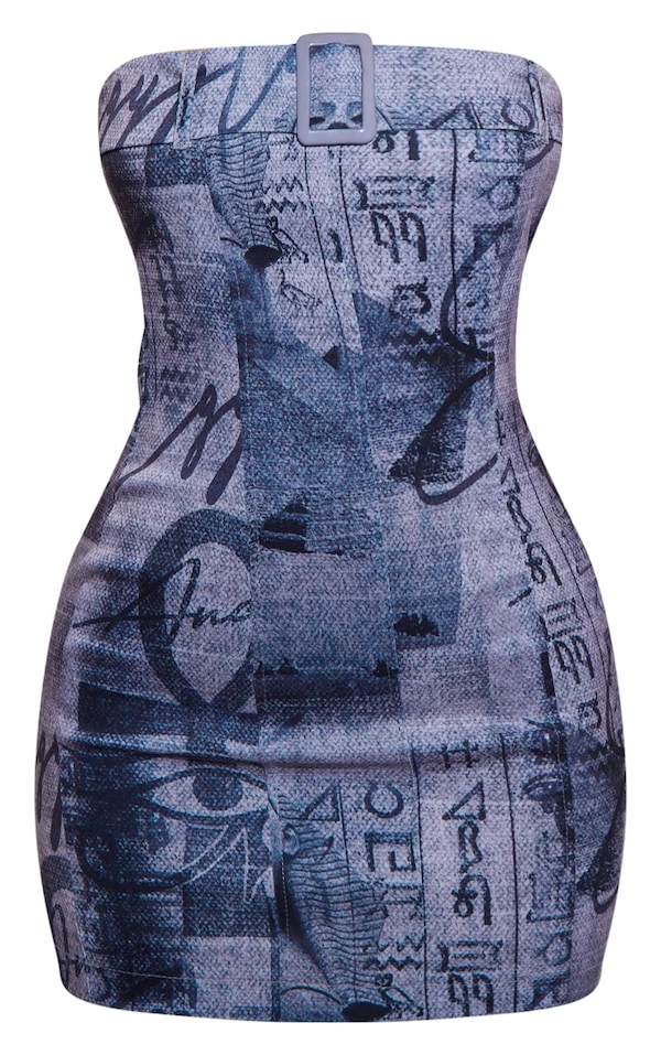 Petite Robe courte grise imprimé égyptien à boucle devant