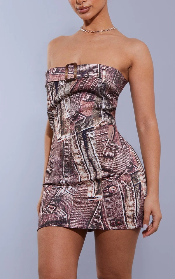 Coup de coeur sur cette robe courte ! Avec son imprimé jean, sa couleur marron et sa boucle devant, elle a tout d’une pièce culte. On vous conseille de la porter avec une paire de talons et quelques accessoires pour un look de soirée inoubliable. Crush sur vous !
