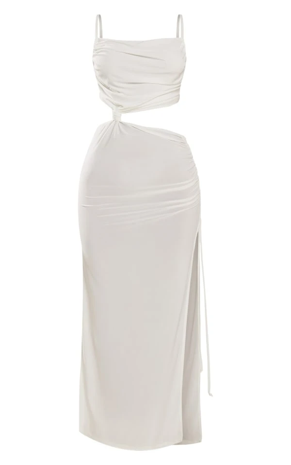Vous êtes absolument magnifique avec cette robe ! On est sous le charme de sa coupe longue très classe et de sa couleur blanche lumineuse. On aime beaucoup porter cette pièce avec des talons transparents et des bijoux dorés pour un date avec bae. Queen, vous !