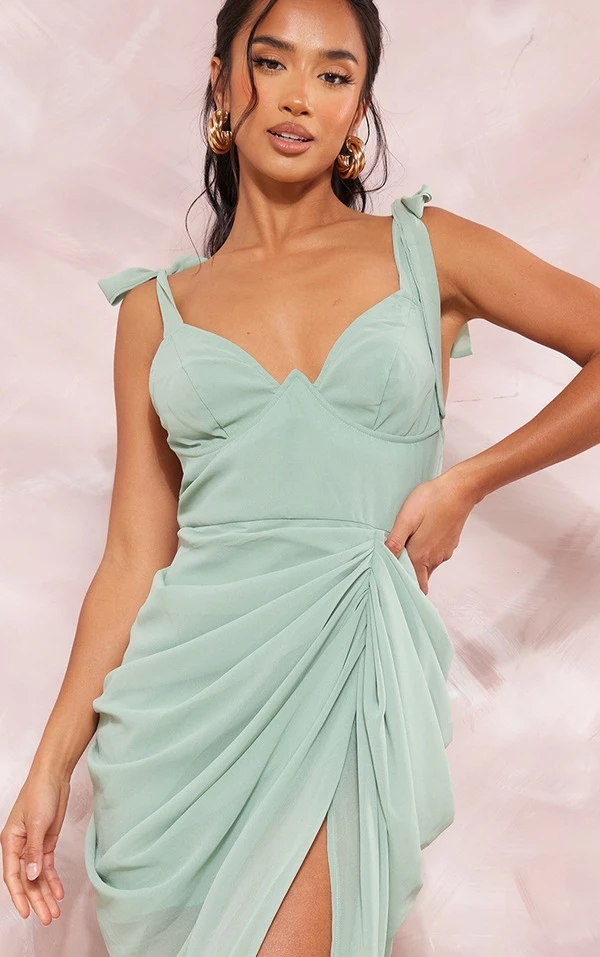 Vous êtes magnifique dans cette robe ! Avec sa coupe mi-longue classy, son coloris vert sauge et son design à armatures, elle est clairement must-have. Pour une grande occasion, on la porte avec des talons et des bijoux dorés. Effet waouh garanti !