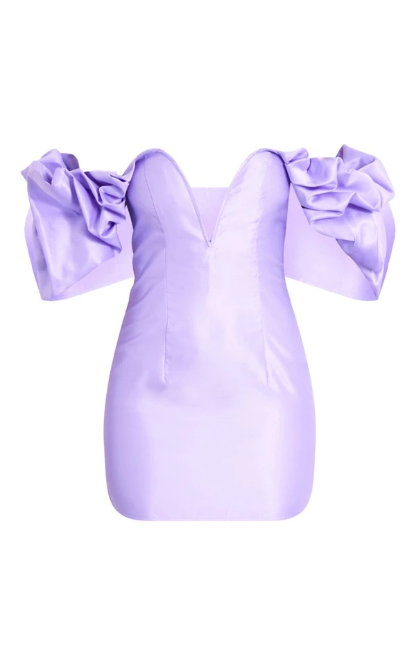 Petite Robe moulante lilas à décolleté plongeant et manches volantées