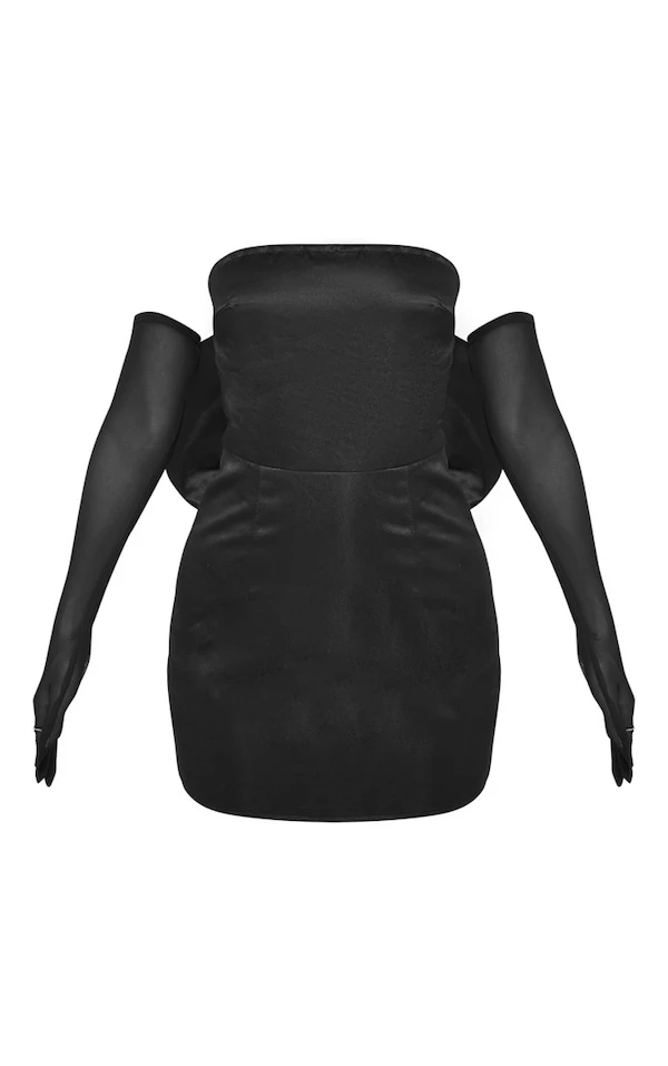 Petite Robe moulante noire à noeud et gants