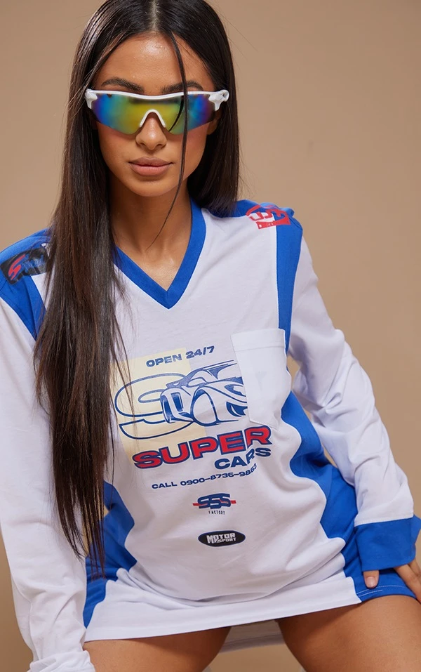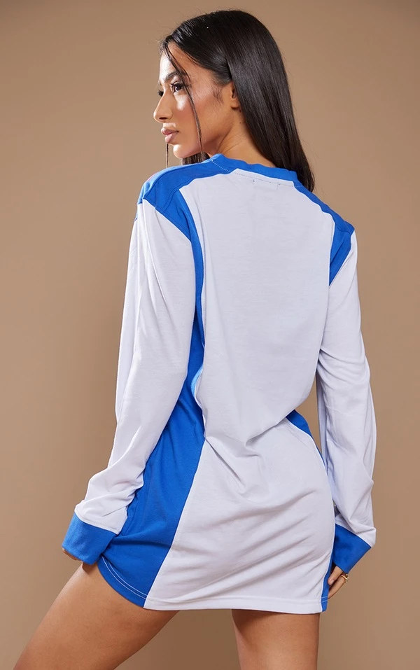 On shoppe illico cette robe t-shirt ! Sa couleur bleue est canon et on adore son imprimé style motocross. Pour finaliser votre look du jour, elle se porte avec une paire de bottines noires et une veste oversize. Crush sur vous !