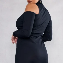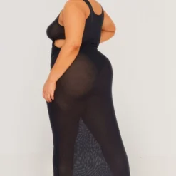 Plus Robe De Plage Longue Découpée Noire à Empiècement Martelé