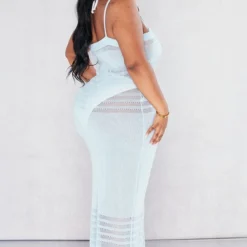 Plus Robe De Plage Longue En Maille Filet Blanche à Col Bardot Et Empiècement Coquillage