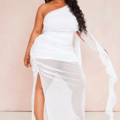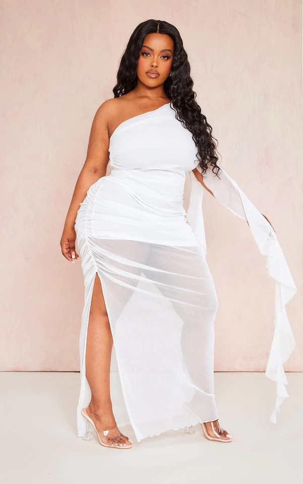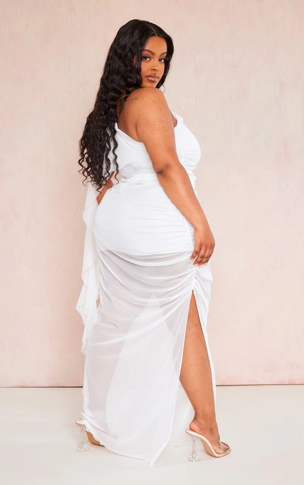 Plus Robe asymétrique blanche en mesh volanté
