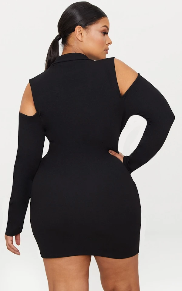 Plus – Robe blazer noire à épaules dénudées et détail anneau