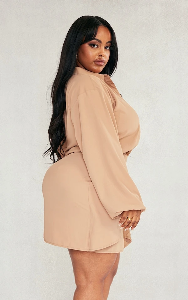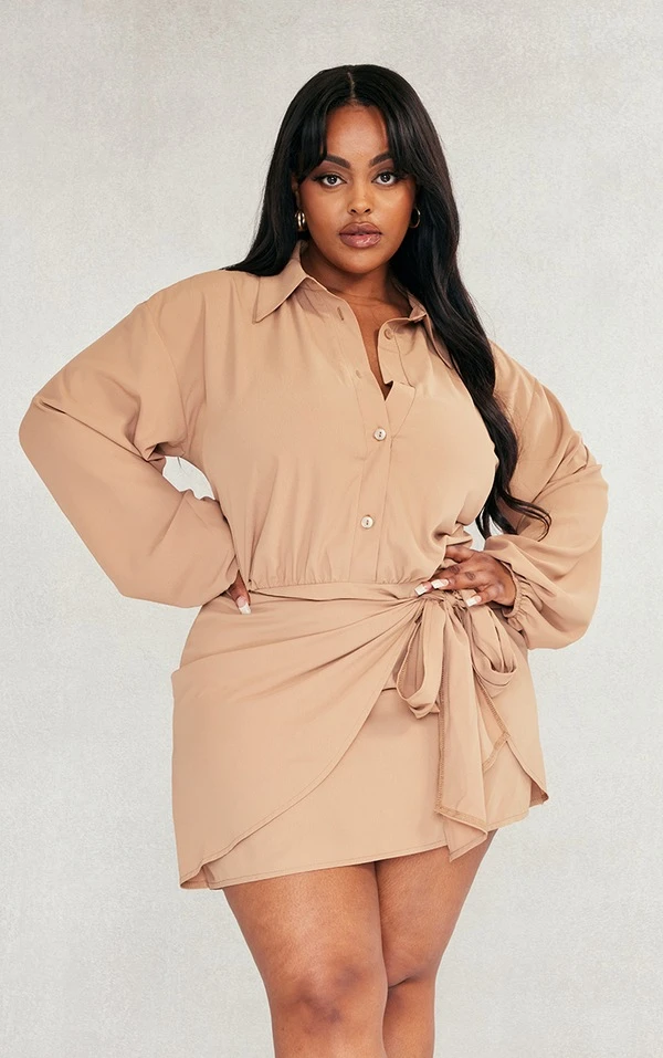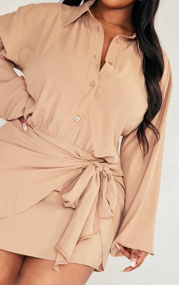 Plus Robe chemise beige nouée devant en mousseline de soie