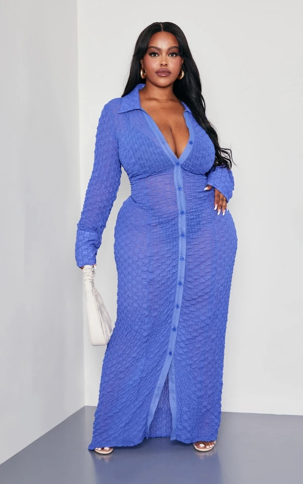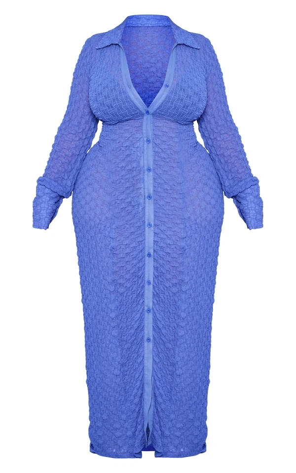 Plus Robe-chemise de plage en mesh texturé bleu vif