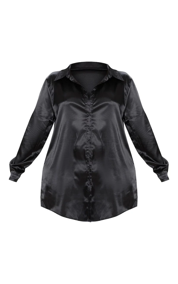 Plus – Robe chemise noire satinée à boutons