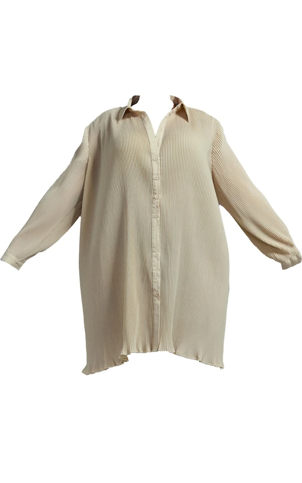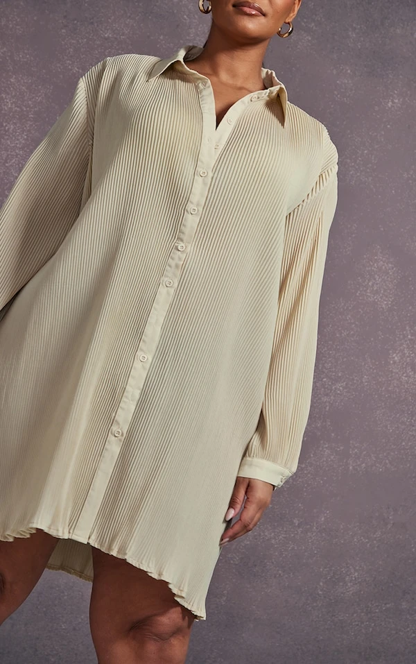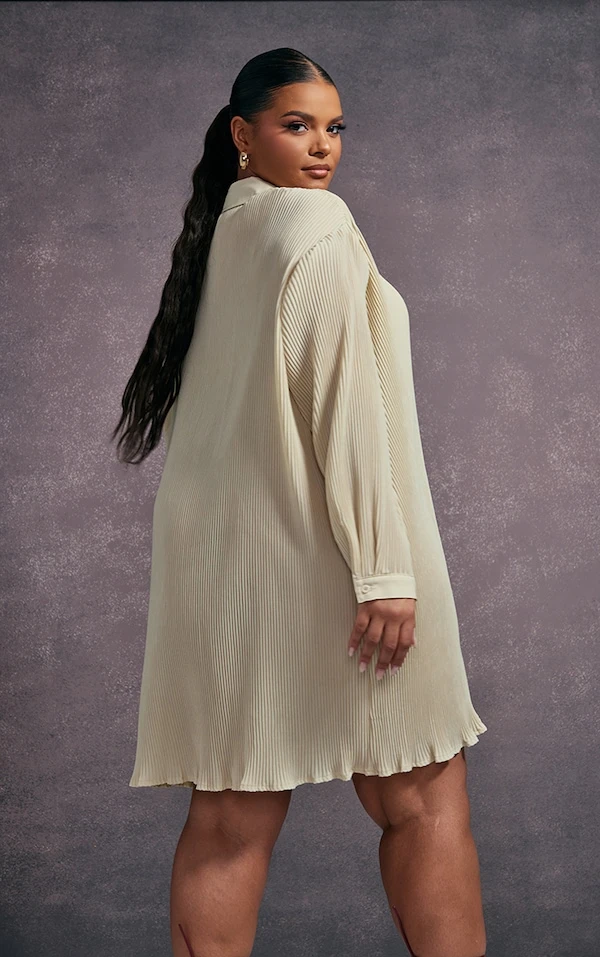 En amour avec cette robe chemise au design oversize canon. Avec sa couleur crème tout douce et son effet plissé, elle a tout pour assurer un look sasn faille. Portez-la avec des sandales à lacets montants et quelques accessoires. Vous allez faire sensation !