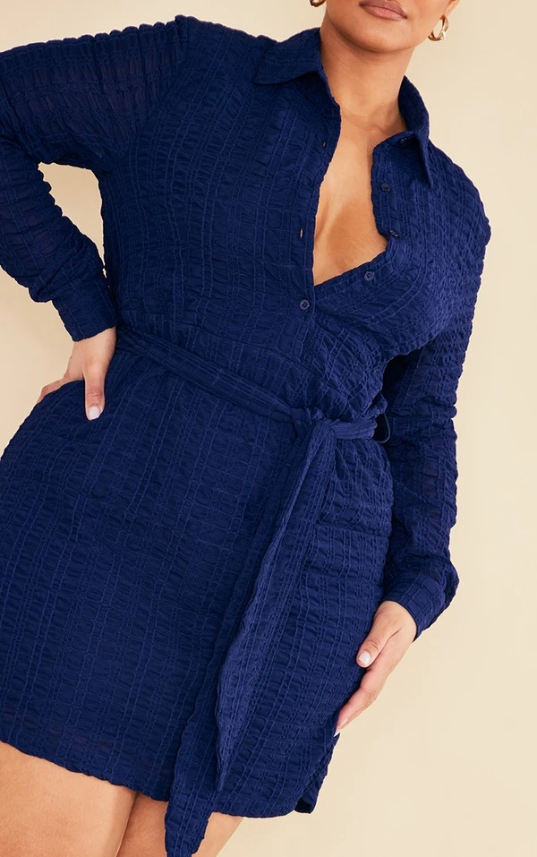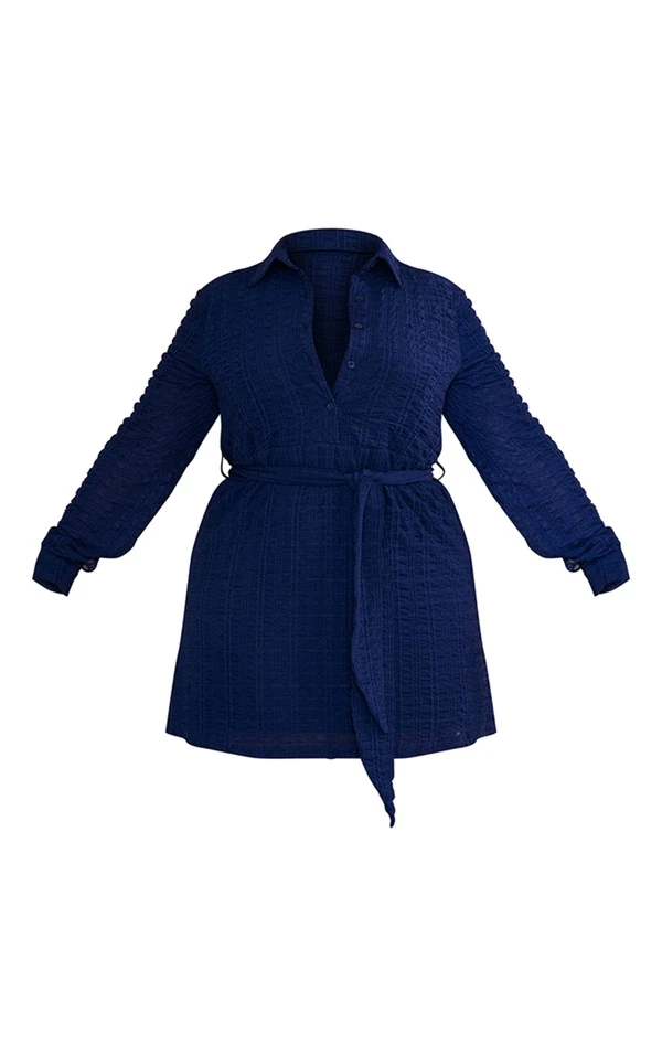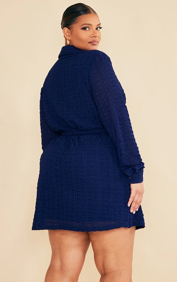 Plus Robe chemise texturée bleu marine à nouer sur la taille