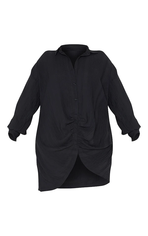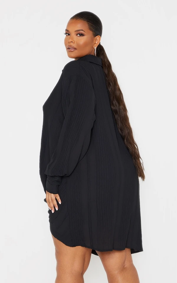 Plus Robe chemise texturée noire à détail drapé et manches longues