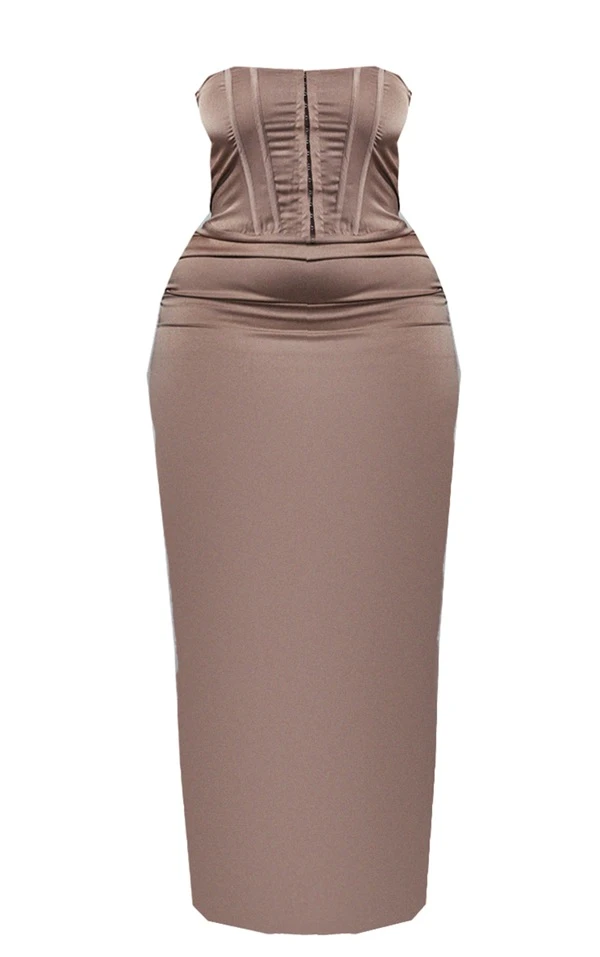Plus Robe corset longue satinée café au lait
