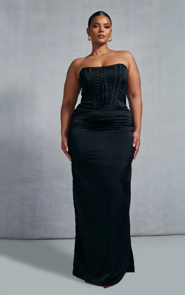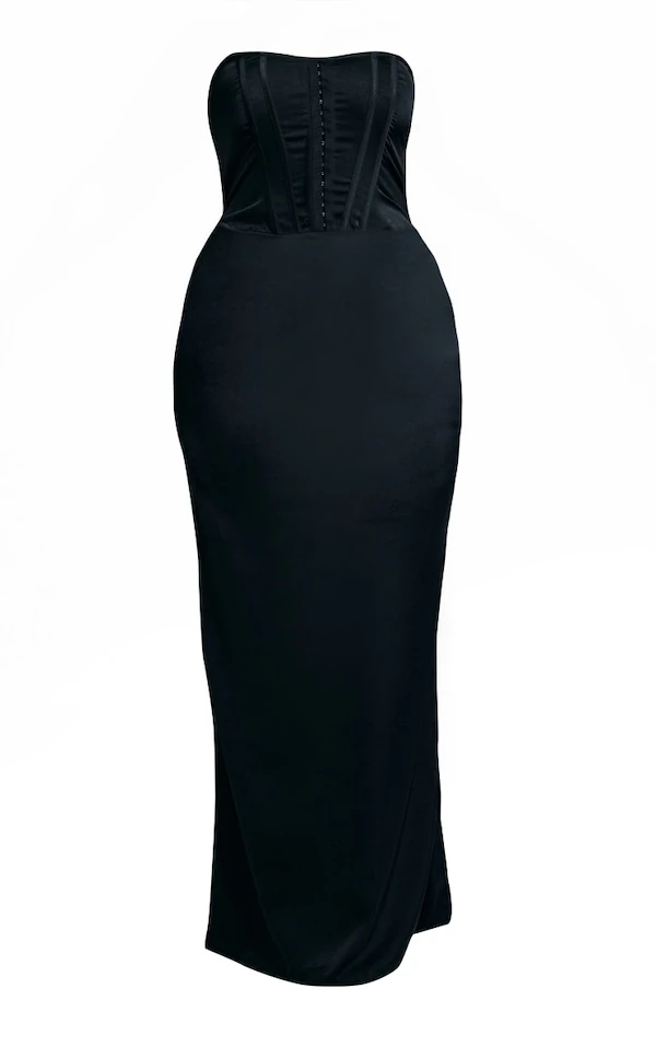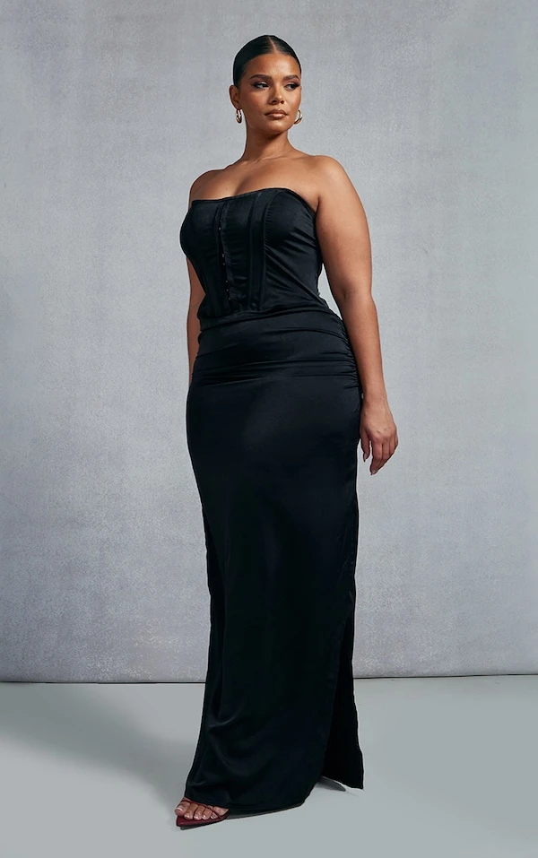 Incroyablement stylée dans cette robe longue ! Son design corset est hyper canon et on adore sa matière satinée et son coloris noir rétro. Plus qu’à enfiler une paire de talons hauts et quelques accessoires gold. C’est tellement beau.