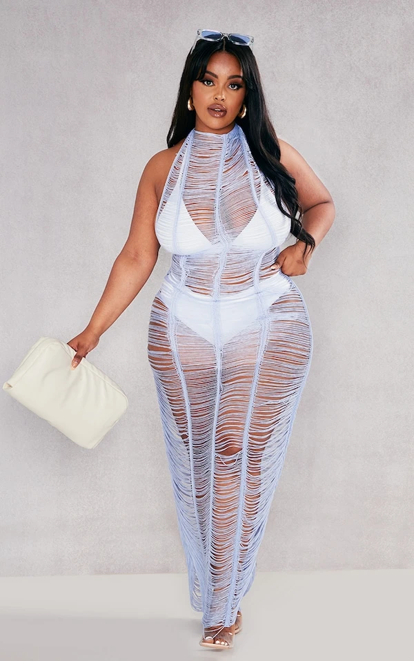 Trop stylée la robe de plage, elle est juste incroyable ! Avec sa coupe longue magnifique, son coloris bleu turquoise et son design frangé, c’est un crush absolument immédiat. Elle est à ajouter par dessus un bikini et des sandales. Vous êtes magnifique.