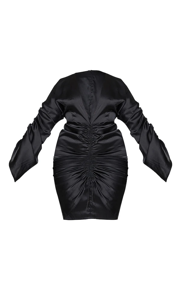 Plus Robe décolletée satinée noire froncée sur l’avant