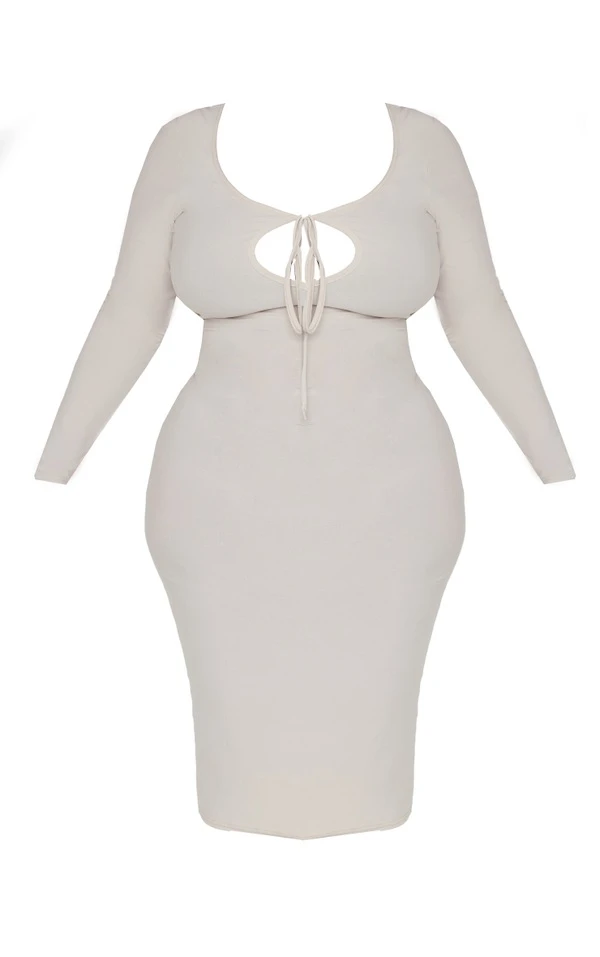 Plus Robe douce gris pierre à manches longues et liens noués devant