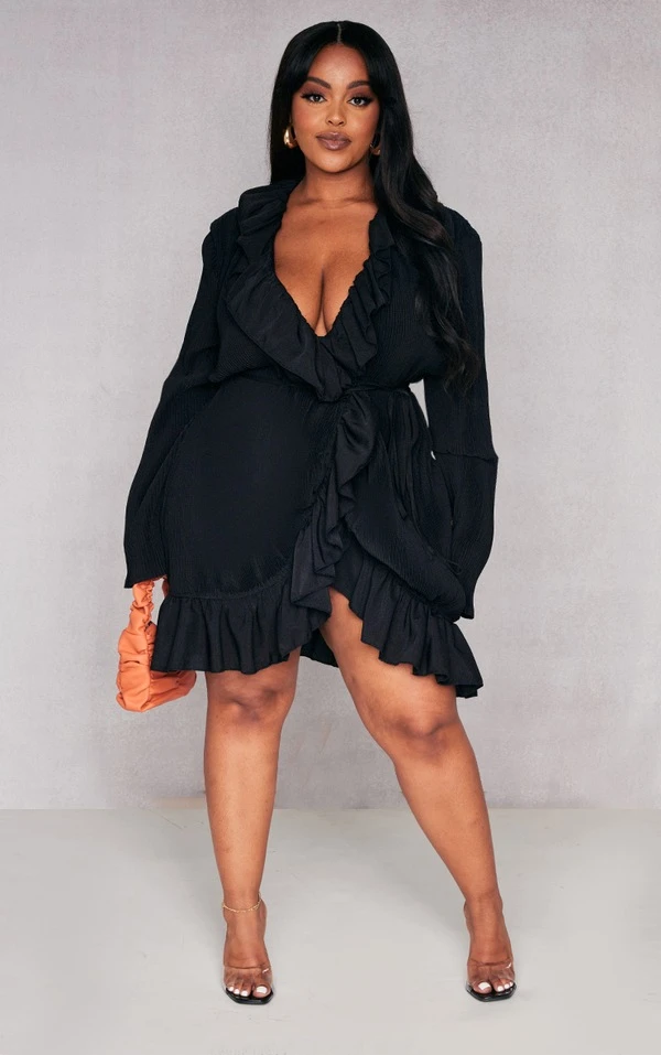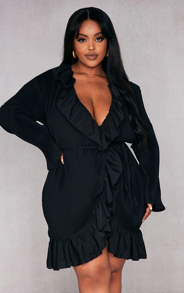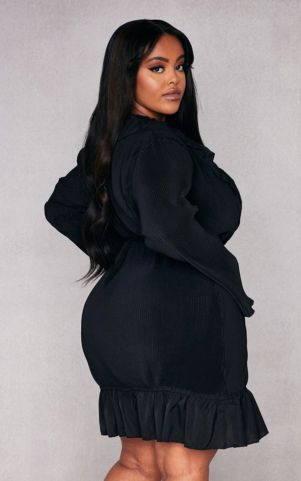 Plus Robe droite cache-coeur plissée noire